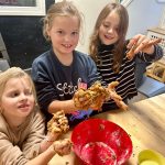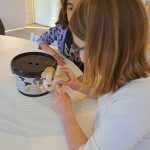 Iedere week kijken we wat er gebeurt in de emmer en zo nodig komt er weer nieuwe verse koffiedik boven op de witte schimmellaag. En dan ineens, na een aantal weken de schimmels te voeden, groeien er grote oesterzwammen uit de emmer. De kinderen draaien ze er zelf af. Vol trots nemen ze de oesterzwammen mee naar huis om thuis te bewonderen en hopelijk te proeven.