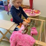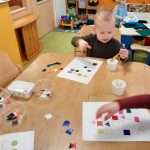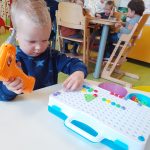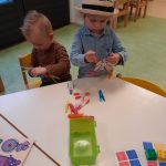 Verschillende kleuren onderscheiden is ook een belangrijk item voor de peuters. Zo draagt ieder kind een pietenmuts van een andere kleur. Uiteraard is er in deze Sinterklaastijd ook een inpaktafel gemaakt en staat er een mooie stoomboot opgesteld op deze Oener peuteropvanglocatie.