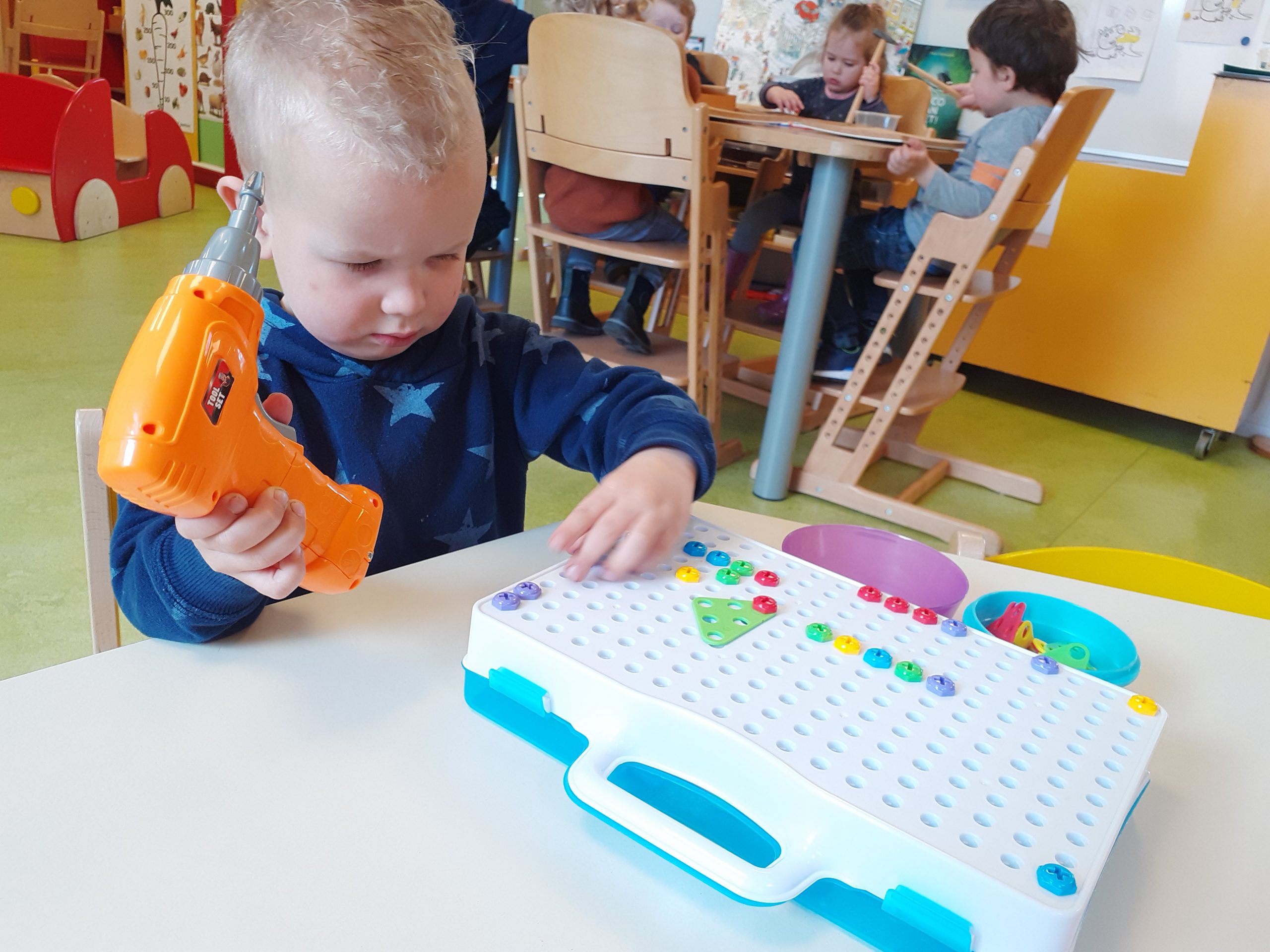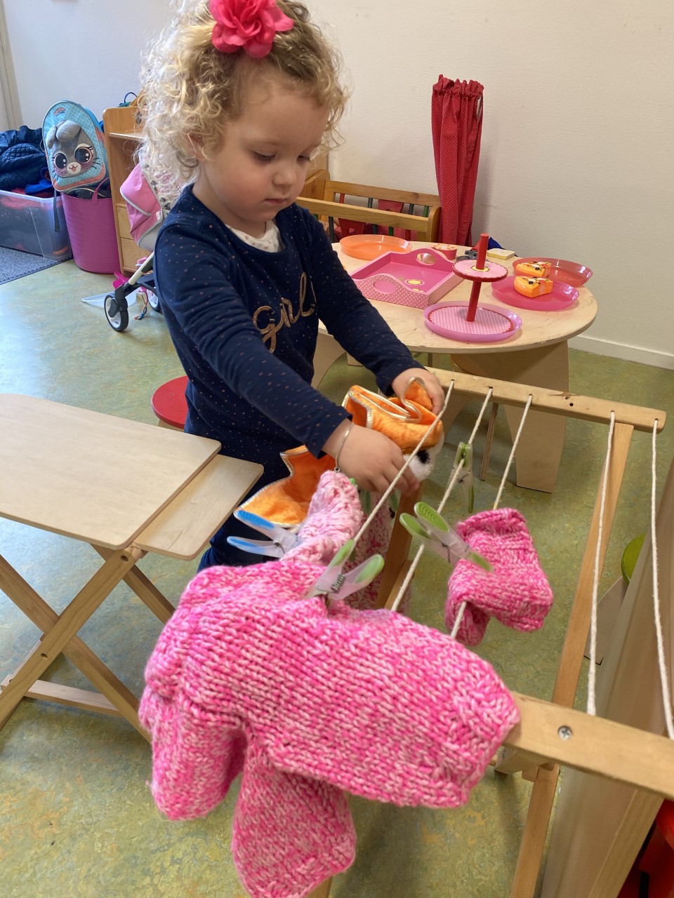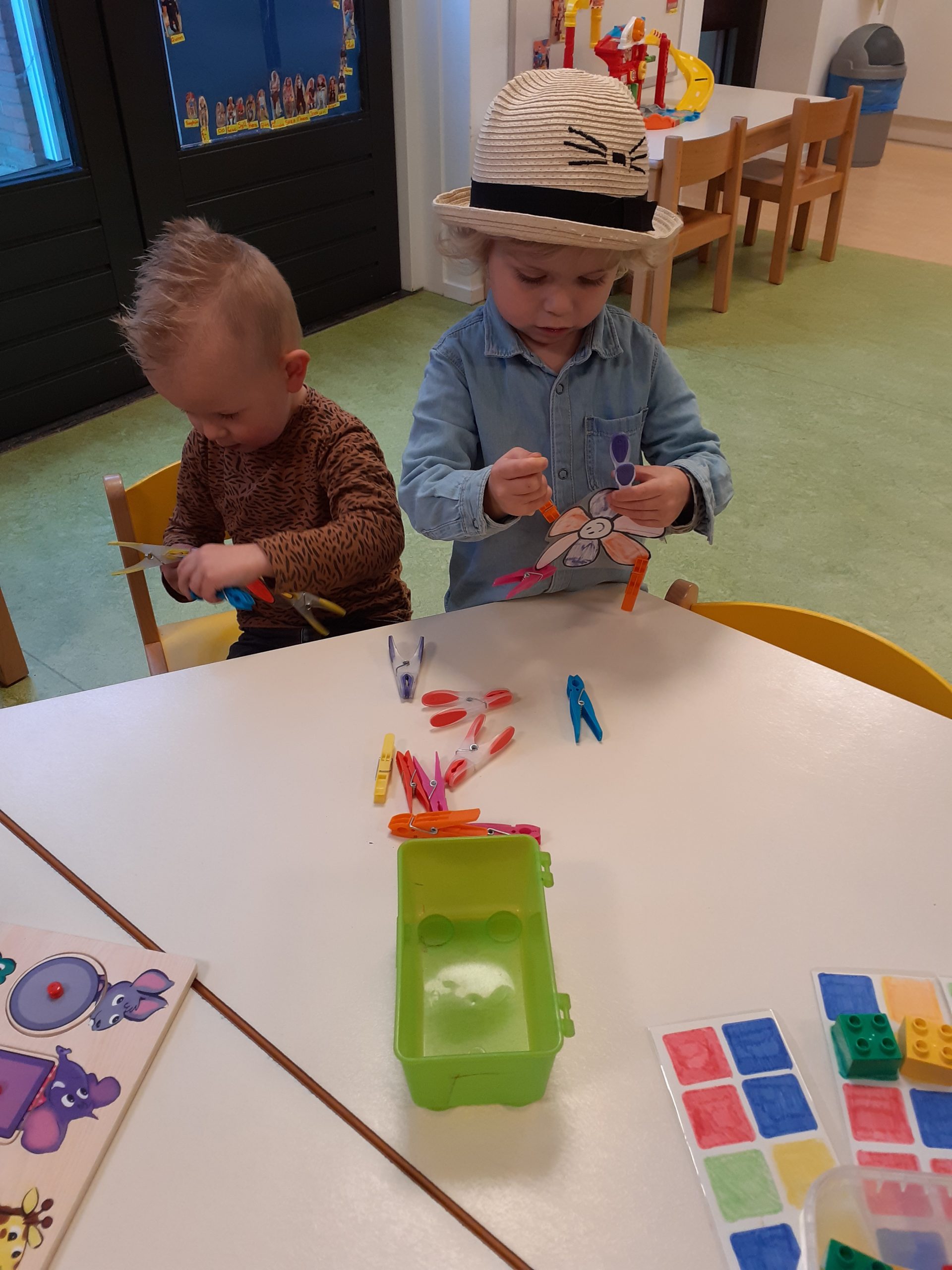 Verschillende kleuren onderscheiden is ook een belangrijk item voor de peuters. Zo draagt ieder kind een pietenmuts van een andere kleur. Uiteraard is er in deze Sinterklaastijd ook een inpaktafel gemaakt en staat er een mooie stoomboot opgesteld op deze Oener peuteropvanglocatie.