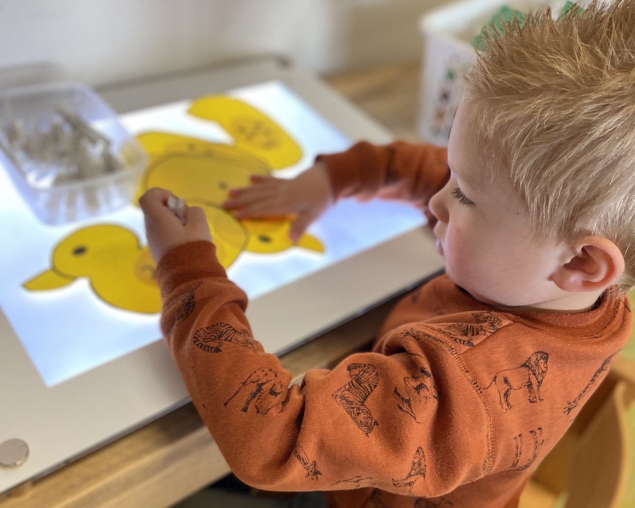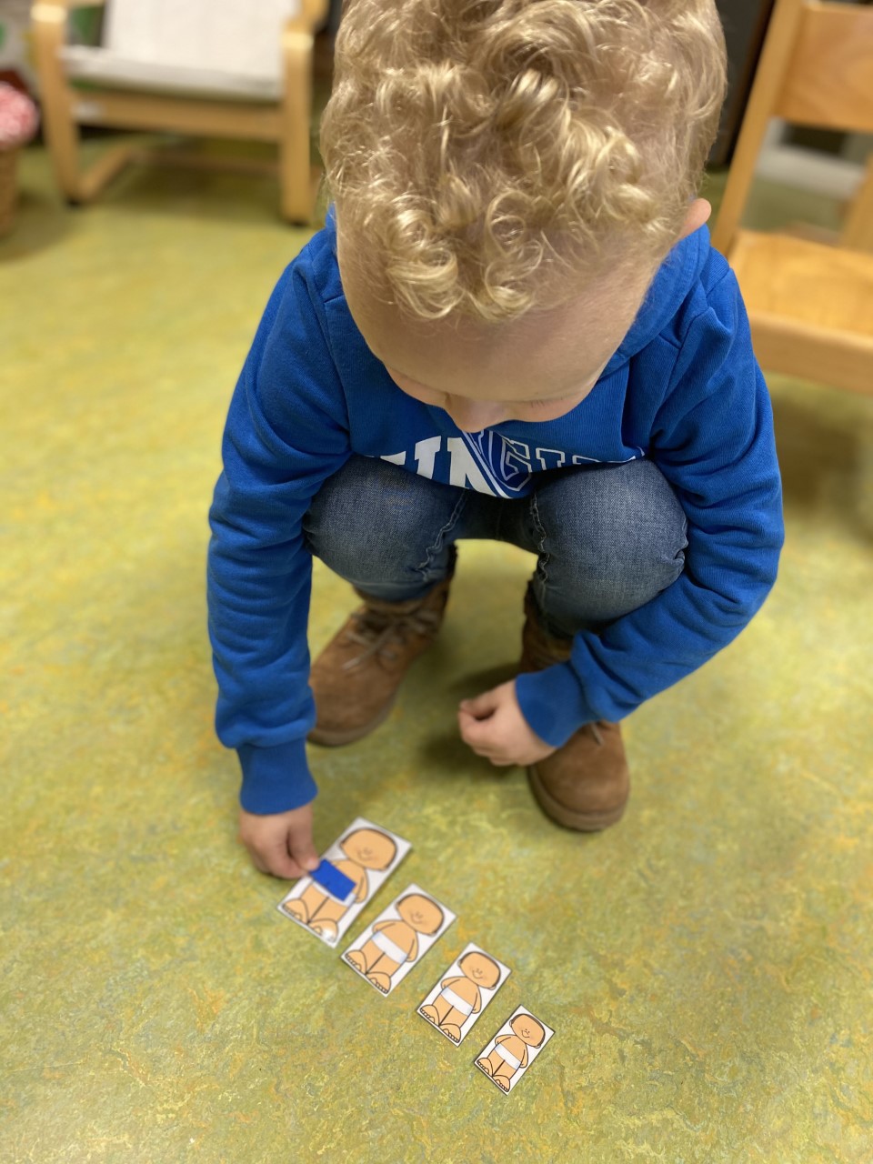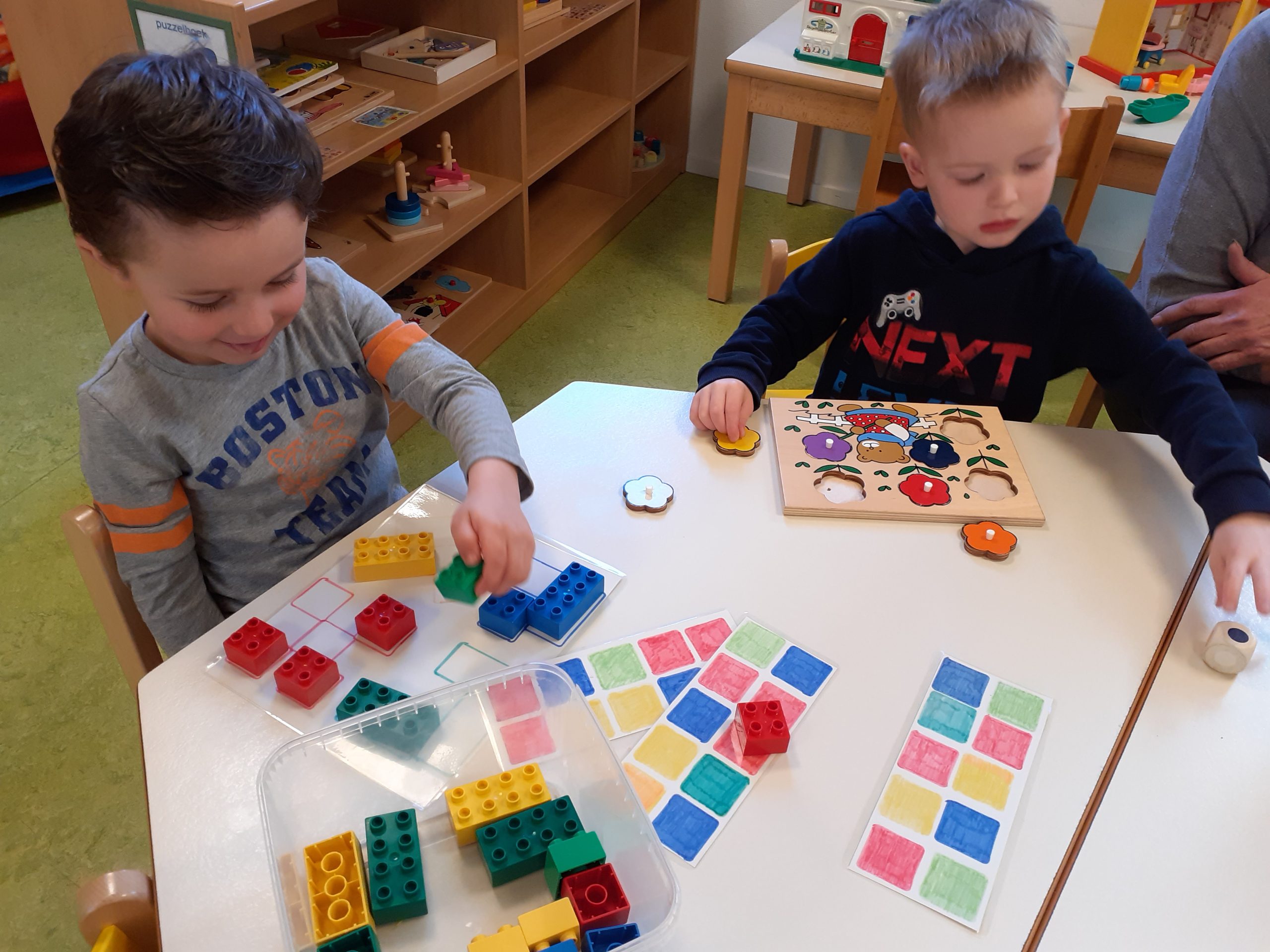 Verschillende kleuren onderscheiden is ook een belangrijk item voor de peuters. Zo draagt ieder kind een pietenmuts van een andere kleur. Uiteraard is er in deze Sinterklaastijd ook een inpaktafel gemaakt en staat er een mooie stoomboot opgesteld op deze Oener peuteropvanglocatie.