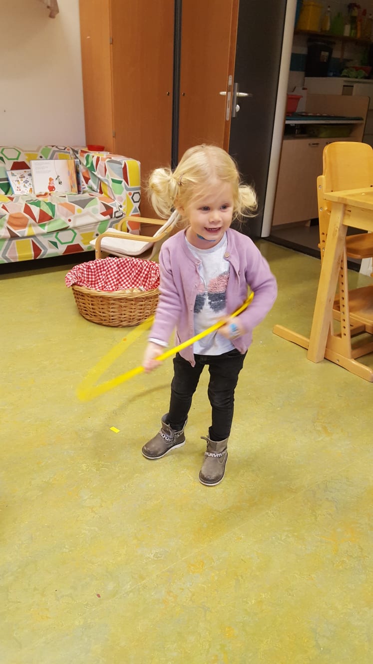 De hoepels zijn ook altijd een groot succes. Hier kan je allerlei leuke dingen mee doen, verschillende spelletjes en natuurlijk proberen te hoepelen. Best moeilijk!