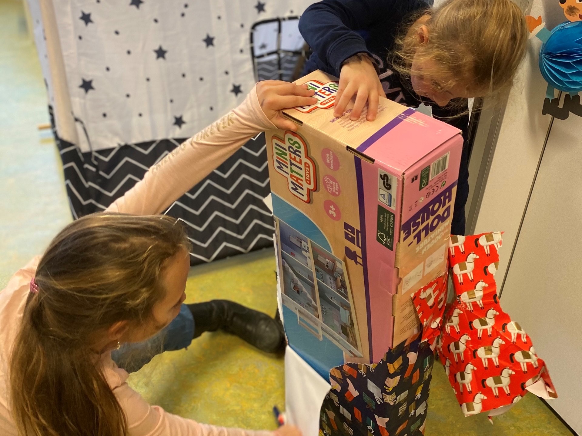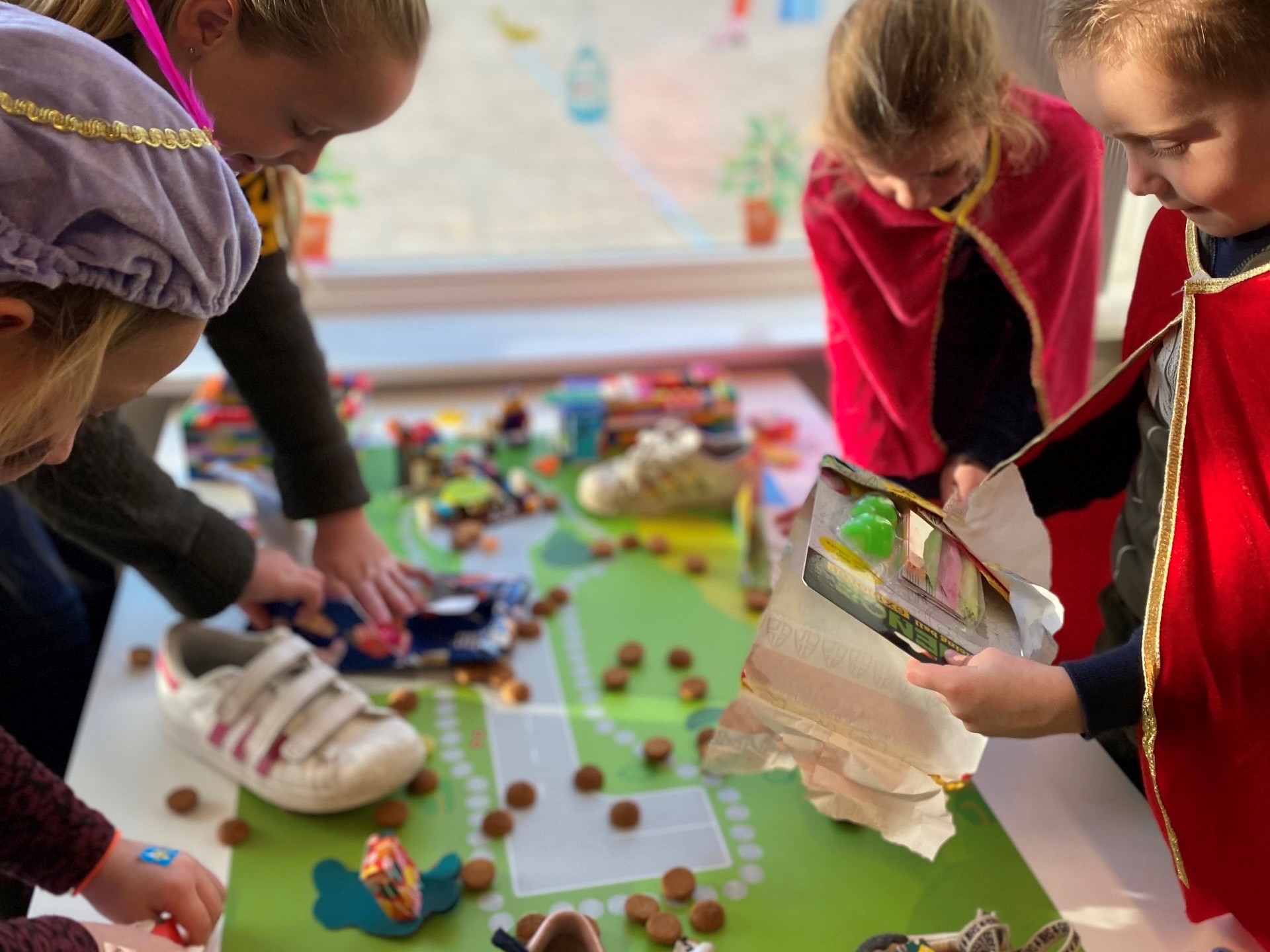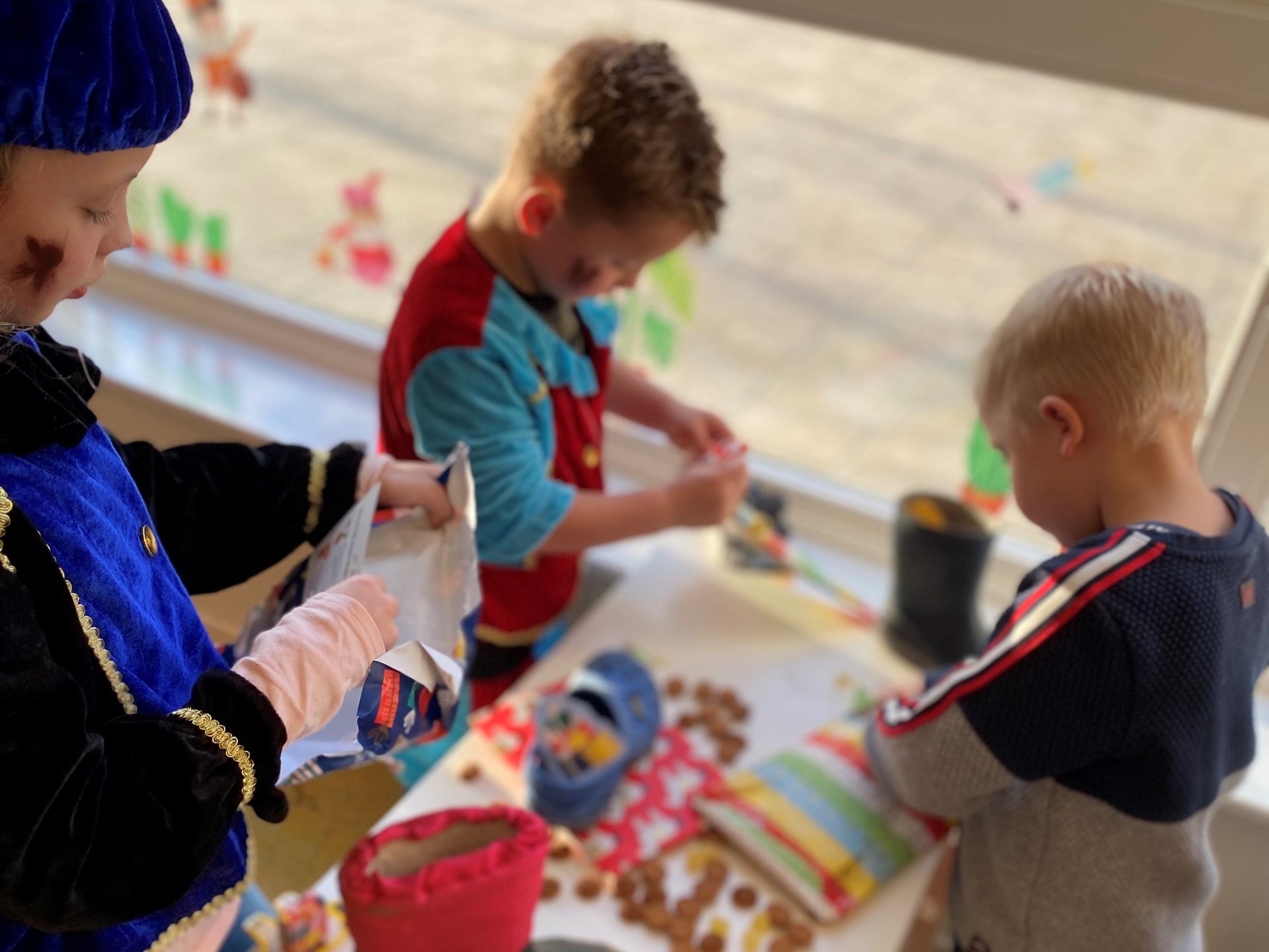 Er waren verschillende hulppietjes bij ons op bezoek. Ook werd er heerlijk gespeeld met de verschillende activiteiten die aangeboden werden. Zo kon je tellen hoeveel cadeautjes Piet in zijn pietenzak had, werden er mooie schoenen versierd door de kinderen en werd er heerlijk gespeeld in de verschillende speelhoeken.