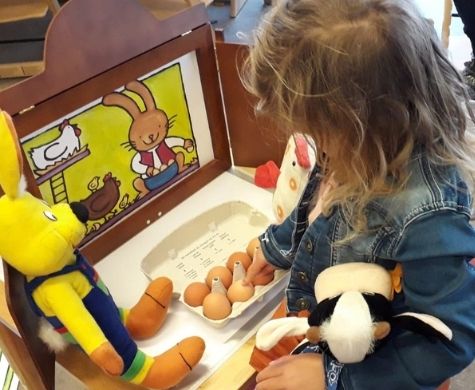 Bij peuterspeelzaal Kabouter Spillebeen staat het thema lente centraal. We lezen het boekje Dottie's eieren en zetten Dottie de kip op het nest voor...
