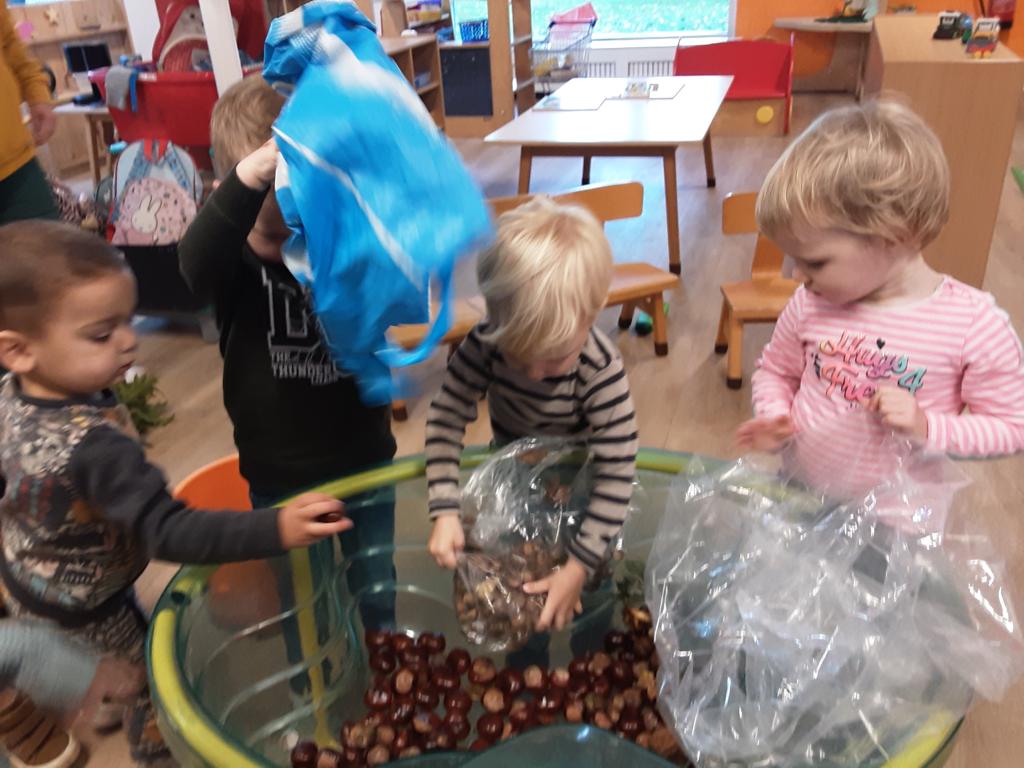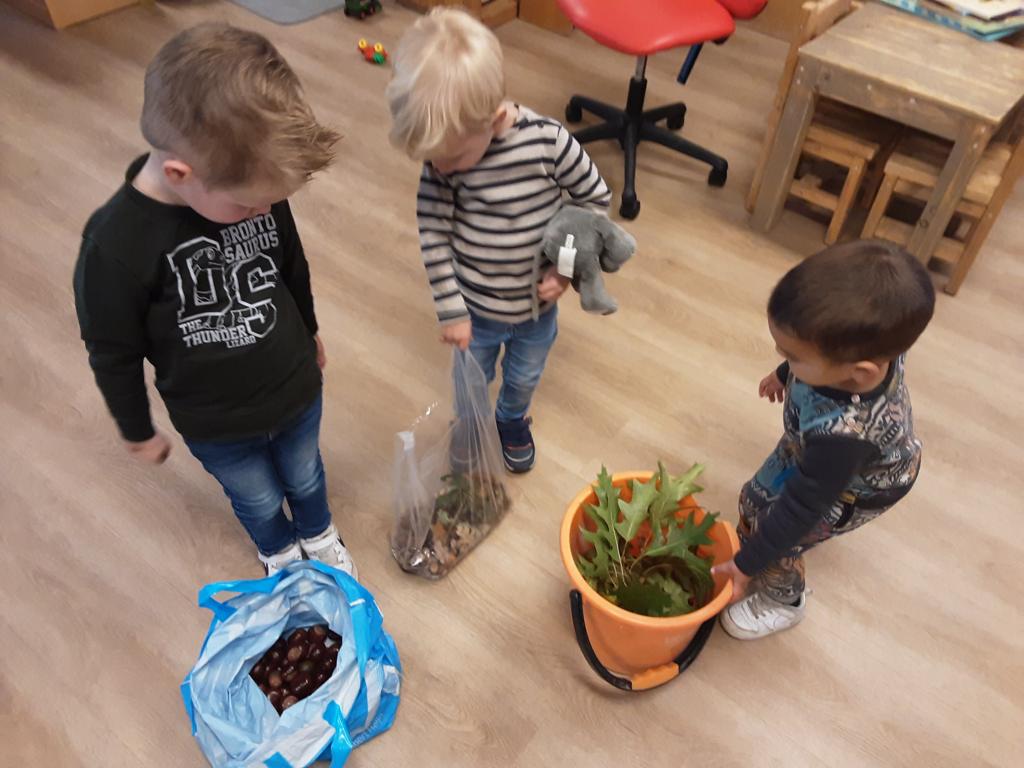 Het is volop herfst bij ’t Heggeholletje! De peuters namen zelf gevonden herfstschatten mee. Alles werd nog eens goed bekeken en er werd veel mee gespeeld. Er werd bijvoorbeeld mee geteld en gesorteerd.