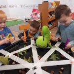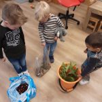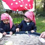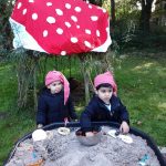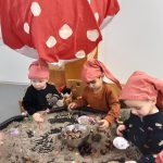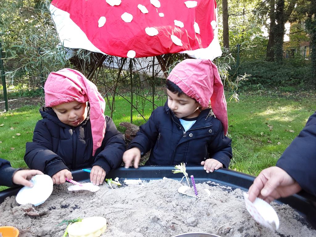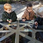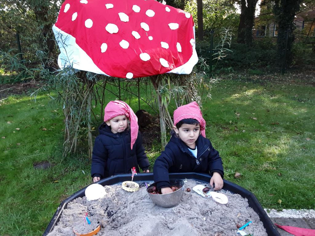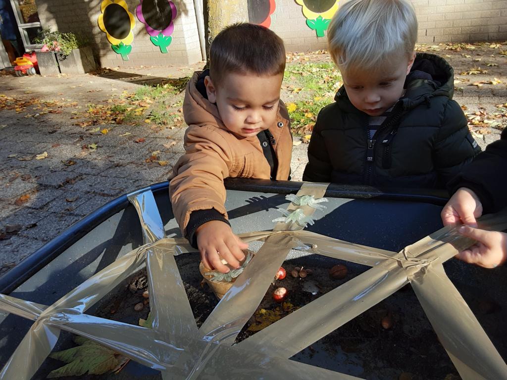 In ons ‘kabouterbos’ maakten de kabouters lekkere taartjes voor de dieren van ongevormde materialen en de herfstschatten. De spinnetjes en de kriebelbeestjes in het web werden gevangen met een pincet. En dat is best moeilijk!