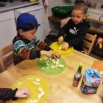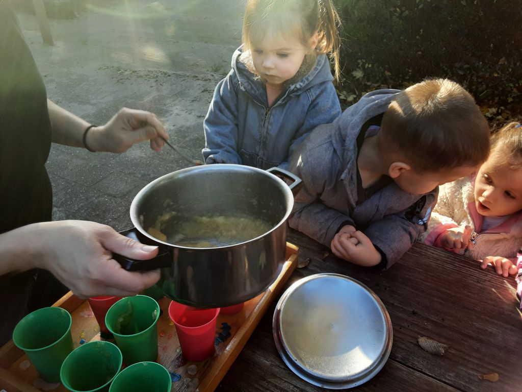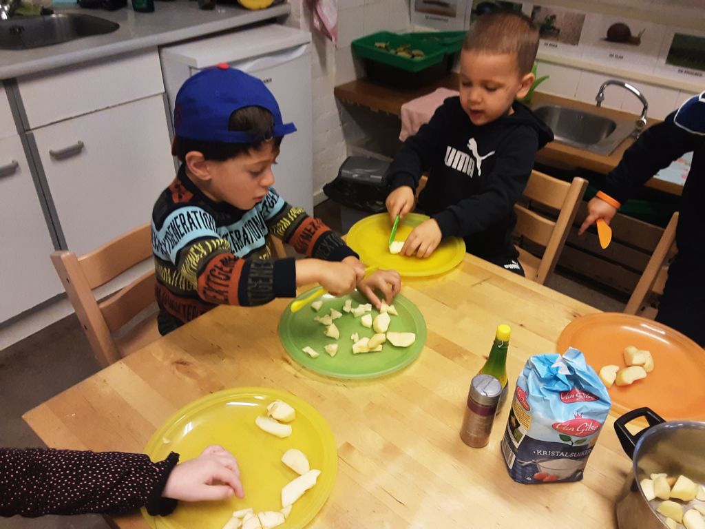 Ook werd er appelmoes gemaakt die we heerlijk buiten op hebben gegeten. Wat een verrassing toen we de eekhoorn ook nog zagen die druk op zoek was naar eten!