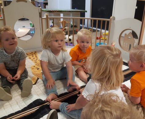 In de spiegel van de grondbox gingen de peuters kijken wie ze nog meer zagen. Welke vriendjes en vriendinnetjes zitten er nog meer bij jou op de groep?