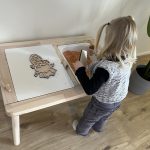 Ook leren we cadeautjes inpakken, stapelen en op volgorde leggen van groot naar klein. Zo ontdekken we spelenderwijs verschillende maten.
