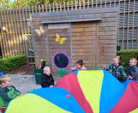 Bij Bikkels kan dit op het speelplein volop. Toch is het ook leuk om soms iets anders aan te bieden op het gebied van bewegen. Dit keer hadden we de parachute erbij gepakt. Hij is echt super groot dus voor alle peuters is er een plekje om hem vast te houden. Als eerste gaan we gewoon lekker hard schudden met onze armen. Door de verschillende kleuren van de stof ziet dat er ook nog eens prachtig uit.