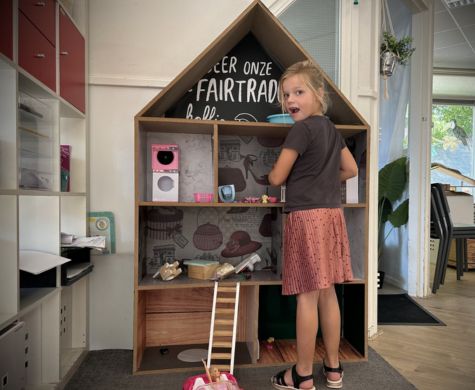 Zo hebben we sinds kort een echte poppenkast, niet alleen leuk om een voorstelling te geven, maar ook een leuke verstopplek. Ook de make-updozen, barbies en lego zijn nog steeds zeer populair bij zowel de meiden als de jongens. En als te warm wordt dan gaan we nog even lekker chillen voor de tv of achter de laptop.