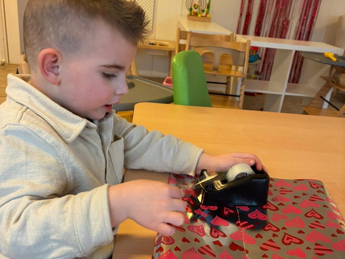 De kinderen maakten met veel enthousiasme hun eigen Valentijnscadeau voor iemand die ze lief vinden. Van knutselen tot versieren: ieder cadeautje werd met zorg en aandacht gemaakt. De oudere kinderen hielpen trots mee met het inpakken van hun eigen verrassing. Zo beleefden zij niet alleen het creatieve proces maar leerden ze ook hoe een cadeau stap voor stap tot stand komt. Hoe mooi is het om iets zelfgemaakt te mogen geven op Valentijnsdag? 💝