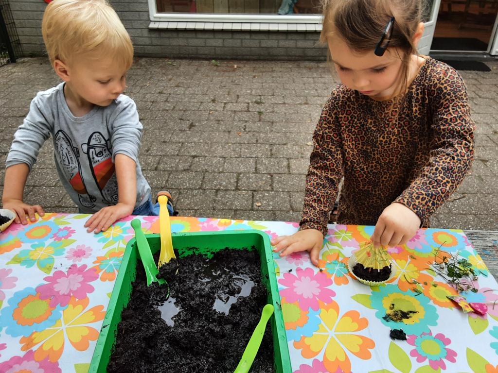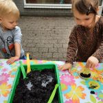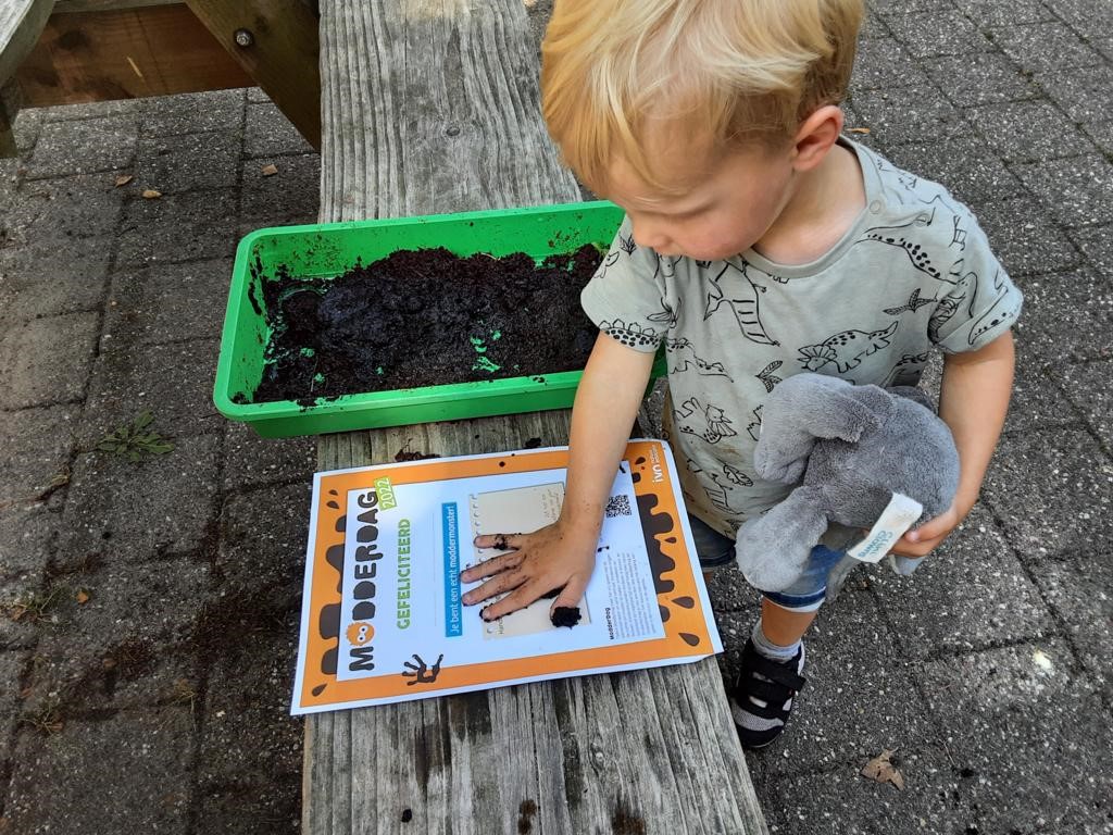 Ook dit jaar heeft ’t Heggeholletje weer meegedaan aan Modderdag. We hebben er zelfs een Modderweek van gemaakt. Het vrij spelen met zand en water staat tijdens deze dagen centraal. Er werd bijvoorbeeld geverfd met modder, moddertaartjes gemaakt, de auto ingesmeerd met modder en vervolgens gewassen en ook op de lichttafel werd met modder gespeeld.