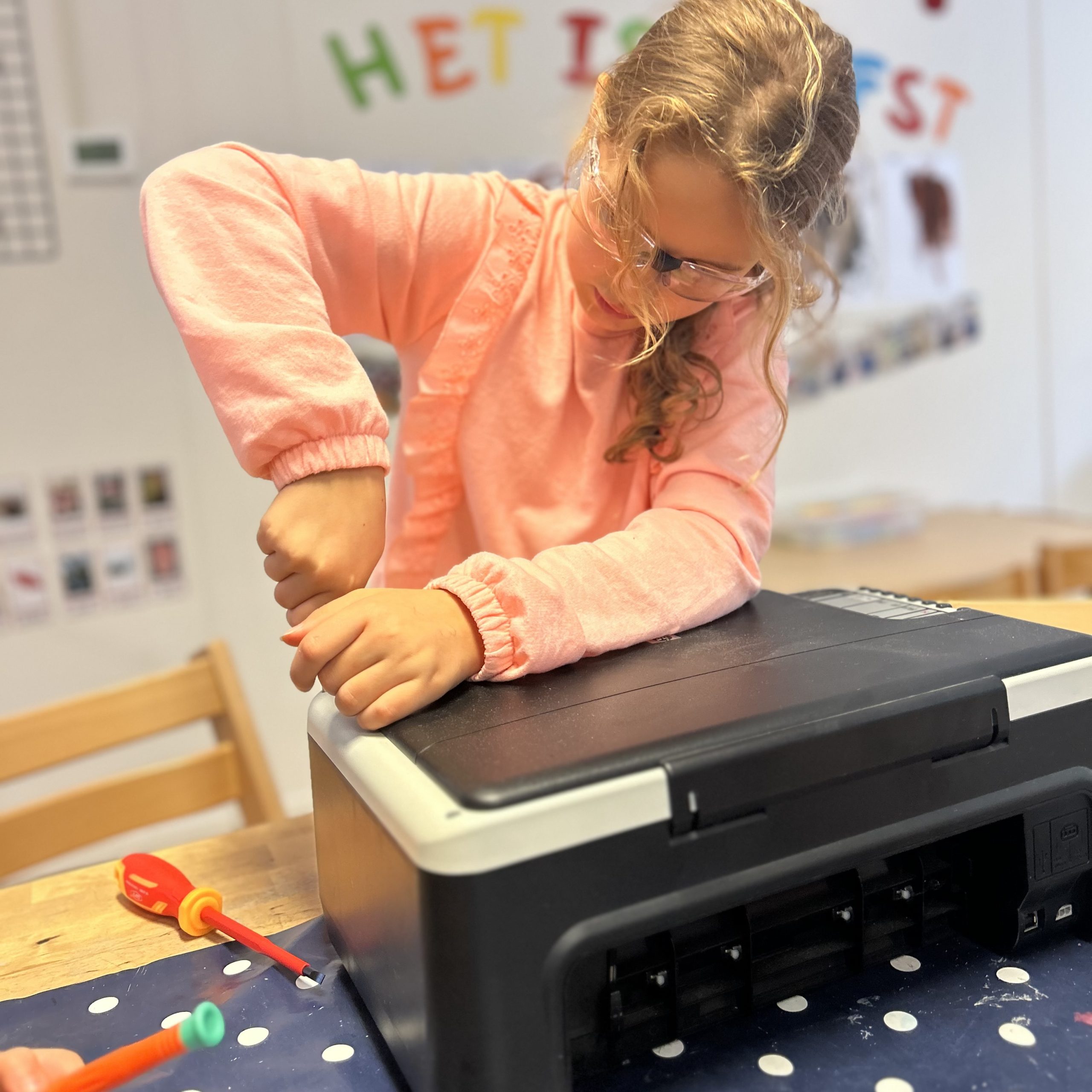 Bij BSO Kanjers zijn wij de afgelopen week aan de slag gegaan met een spannend project: oude elektra uit elkaar halen! Een mixer, mini rekenmachines, printers, een radio of een blender, niks was te gek!