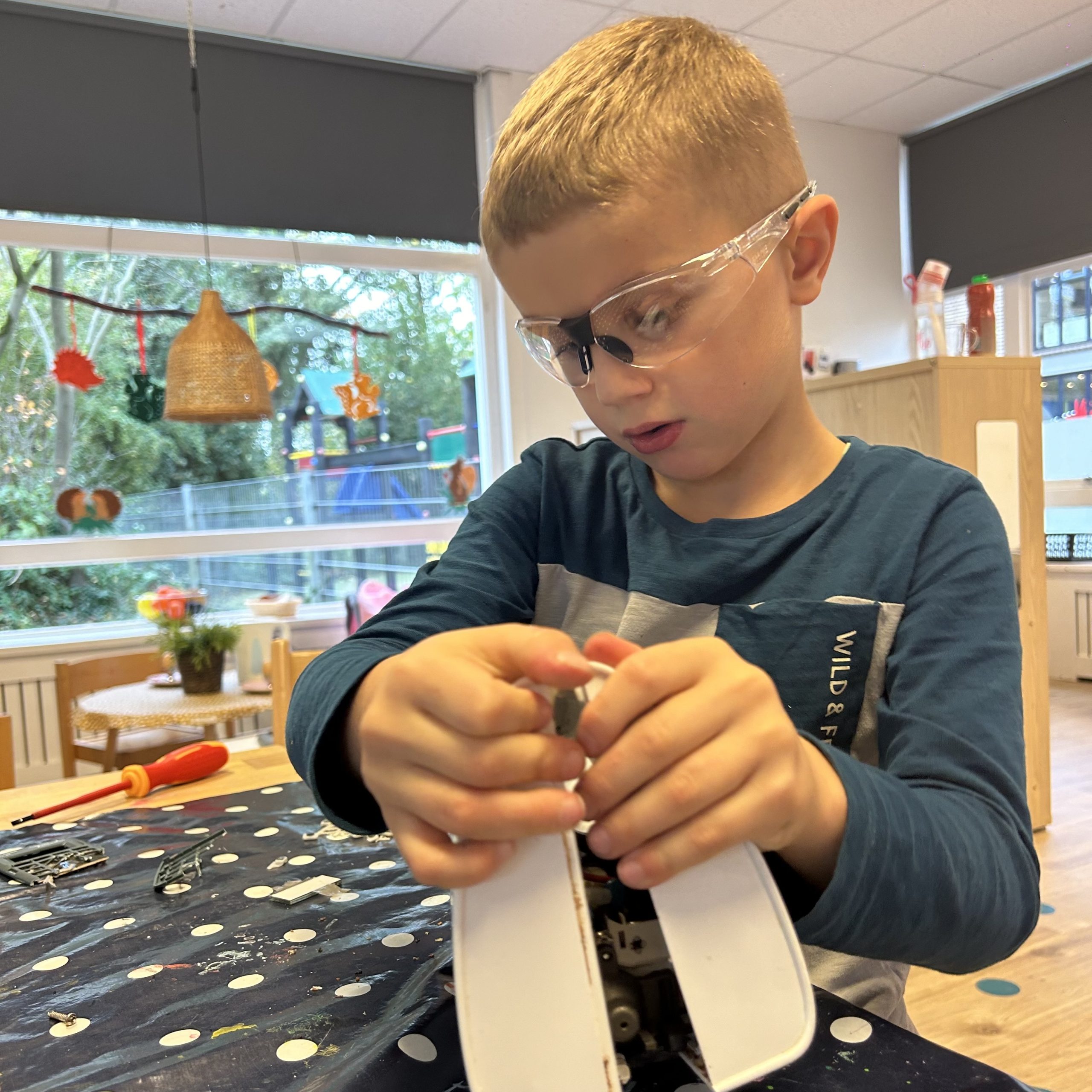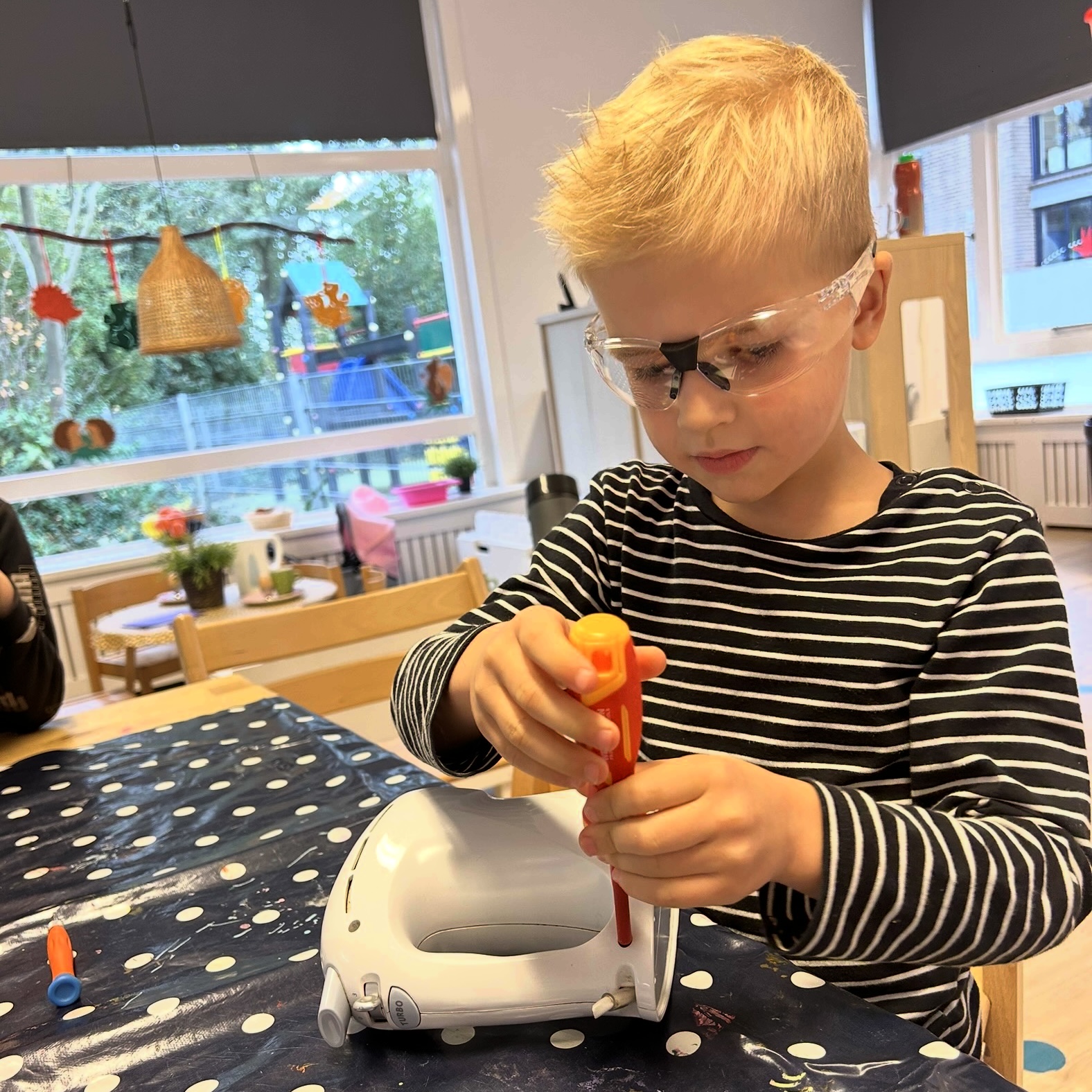 De kinderen leren op een veilige en leuke manier over techniek en hoe dingen werken. Onder begeleiding van de pedagogisch medewerkers hebben zij hun handen uit de mouwen gestoken.