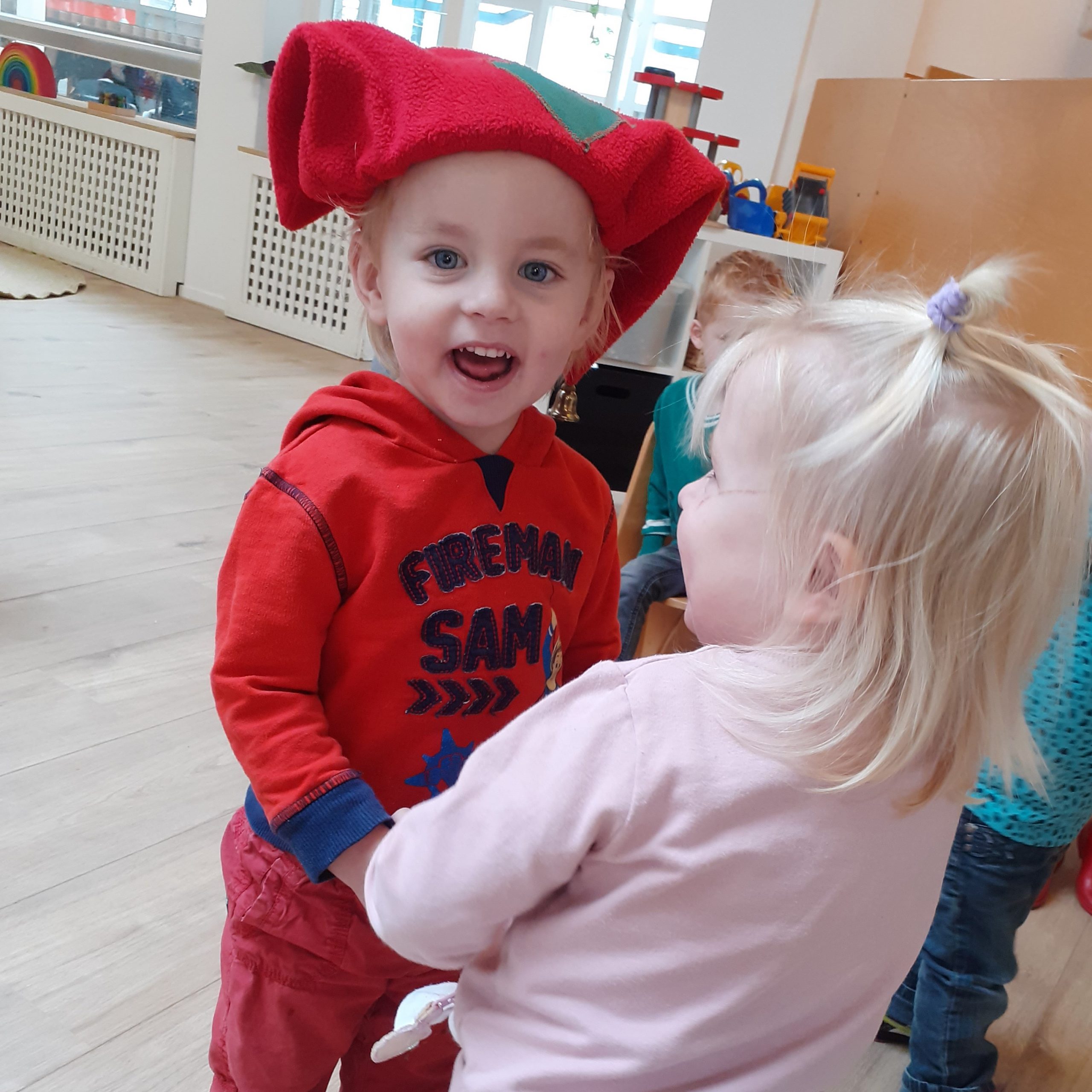 In de kring zongen we ook nog het liedje: “Er zat eens een kaboutertje te huilen op een steen” en “Op een grote paddenstoel rood met witte stippen”.