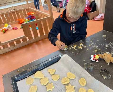 Na weken mooi weer te hebben gehad, was het de afgelopen tijd wat minder weer. Dus hebben wij bij BSO Kanjers koekjes gebakken. Samen het deeg...