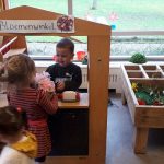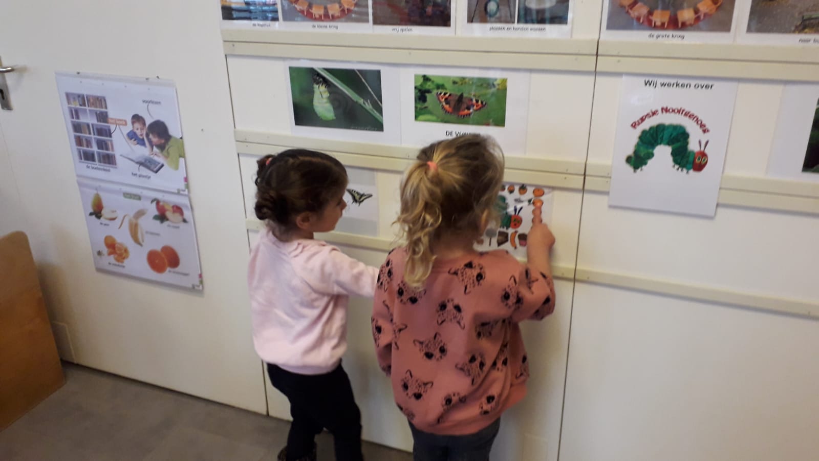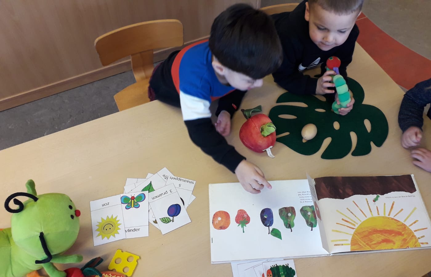 Bij peuterspeelzaal/peuteropvang ’t Heggeholletje in Vaassen werken we deze weken met het thema ‘Groeien en bloeien’. De peuters ervaren het groeiproces van rups naar vlinder. We lezen het boekje ‘Rupsje Nooitgenoeg’ en leren zo onder andere dat er eten en drinken nodig is om te groeien. Dit kan gekocht worden in de winkel die we ingericht hebben. Hierbij komt gelijk het tellen aan de orde.