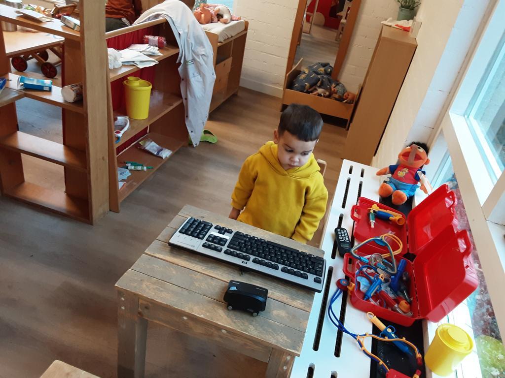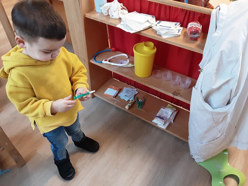 Op ’t Heggeholletje zijn we deze weken bezig met het thema ‘Ik ga naar de dokter’. De knuffels en poppen worden onderzocht door de dokter en krijgen een pleister, verband of een prikje.