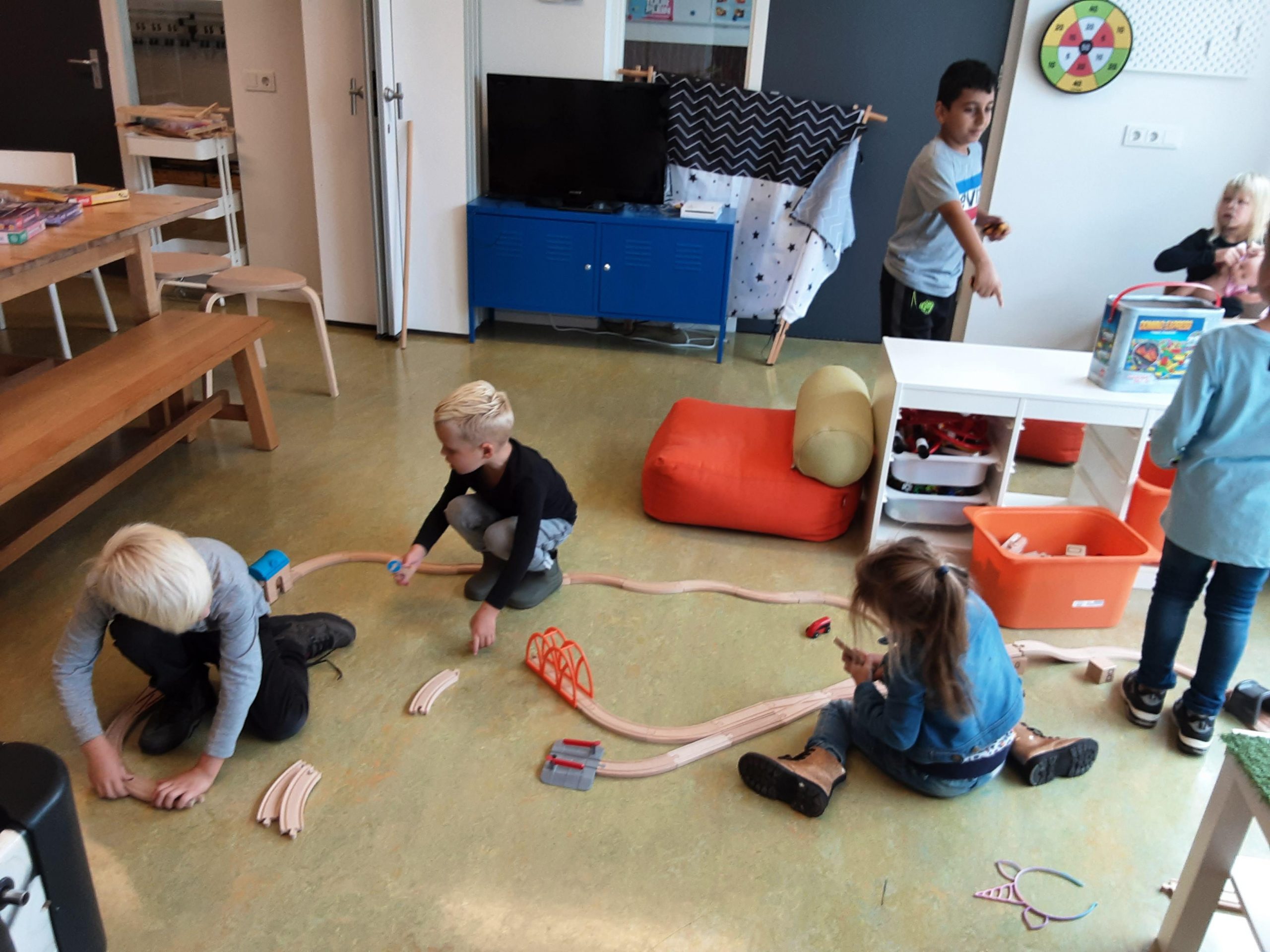 Je kunt buiten spelen op het plein, voetballen, samen iets bouwen, een spelletje doen of lekker creatief bezig zijn.