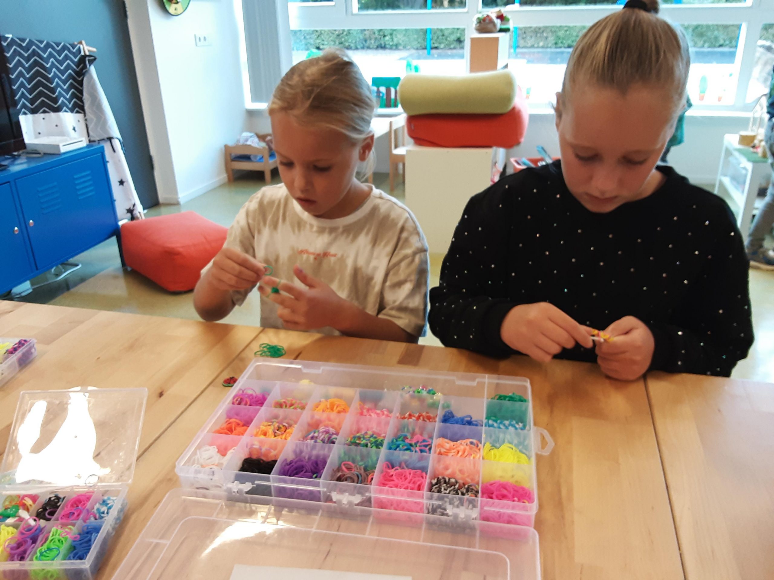 Er worden mooie loom bandjes, kralenkettingen en schilderijen gemaakt.