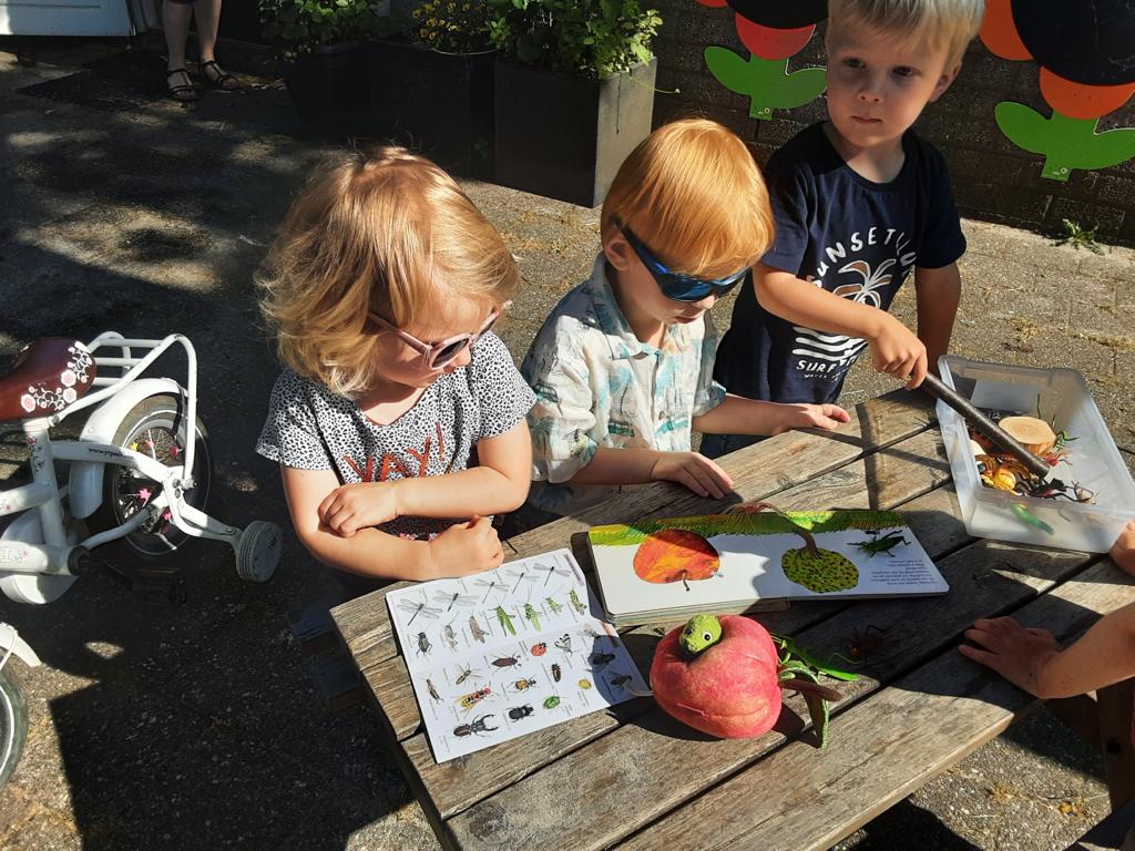 We lazen bijpassende boeken voor zoals; ‘Rupsje Nooitgenoeg in de tuin’, ‘De krekel die niet tsjirpen kon’ en ‘Nachtgeluiden’.