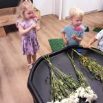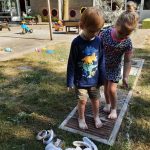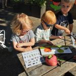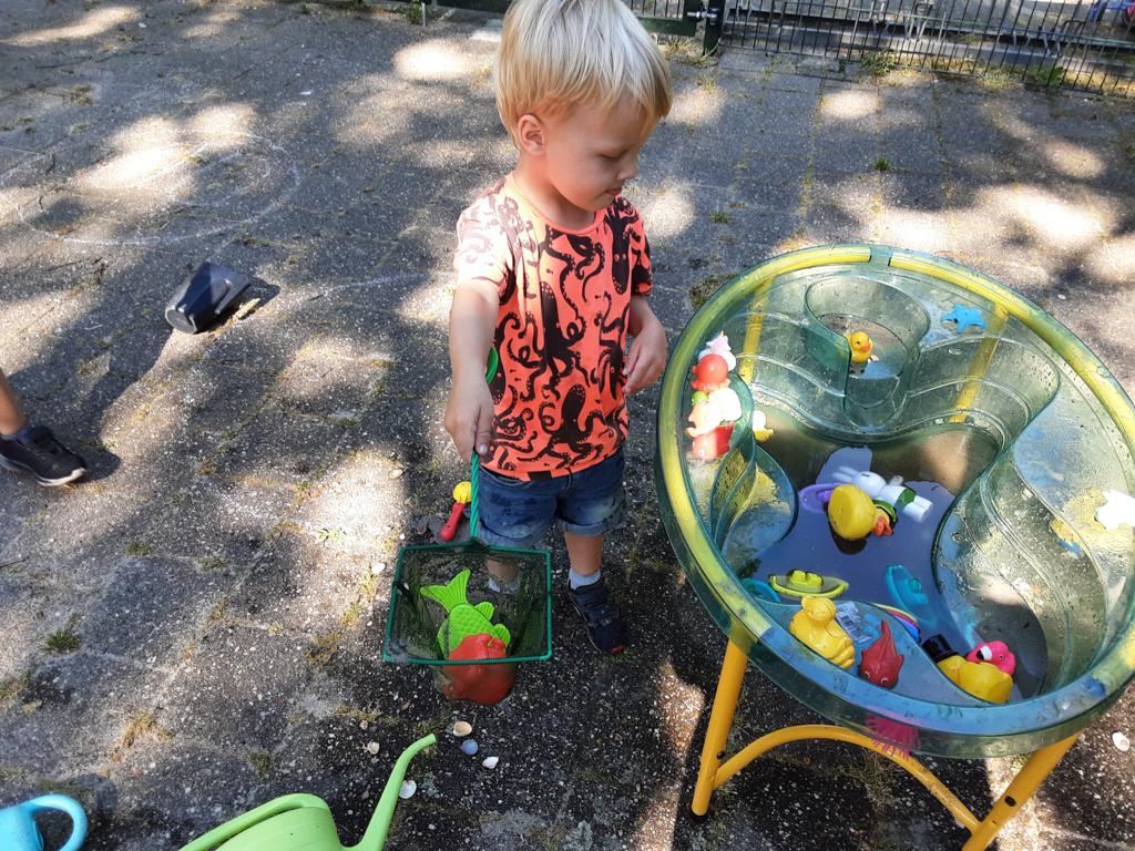 De afgelopen weken was het thema op de peuterspeelzaal ‘Wij gaan naar buiten’. Een thema wat natuurlijk perfect past bij Groene Kinderopvang. Wat hadden we geluk met het mooie weer. Er werd veel met water, zand en modder gespeeld.