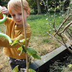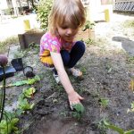 We besteedden extra aandacht aan de zintuigen. We roken aan en keken naar bloemen, luisterden buiten naar geluiden, voelden verschillende ondergronden op het blotevoeten pad en proefden aardbeien en kruiden uit de moestuin.